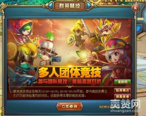 g)玩家在群英竞技场中,不使用收益次数协助他人完成挑战可获得友情积分,友情积分可在兑换商店----友情商店中兑换道具;