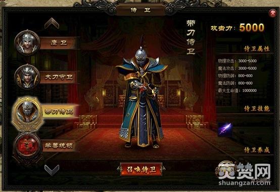 每个侍卫都拥有自己专属的技能,单体暴击、群体攻击、等等不同的侍卫都会给你带来不一样的感受,不同的侍卫也应用于不同的场景,选择一个合适的侍卫是快速击杀BOSS的基础;