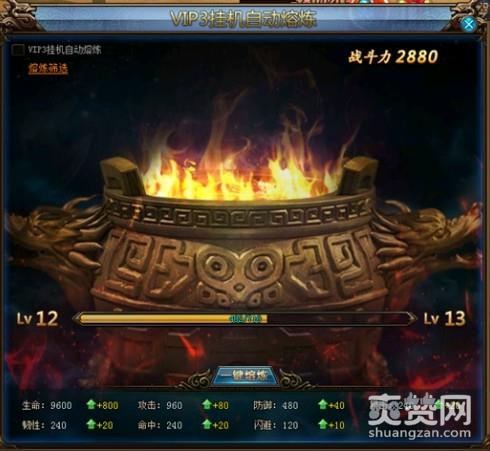 选择【一键熔炼】,可以将多余的无用装备丢进熔炼炉,进而提高当前的熔炼等级。