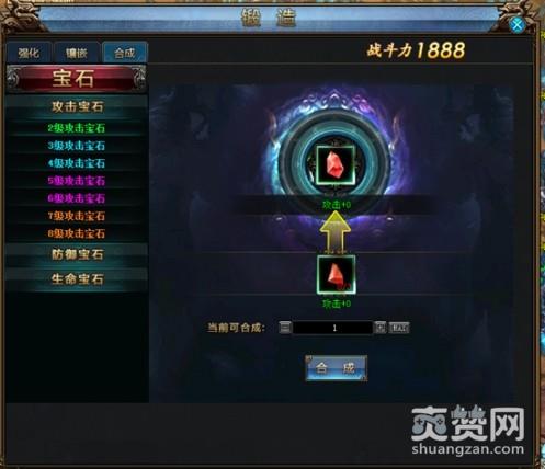 如上图所示,宝石被分成三类:攻击、防御、生命。每种宝石有8级品质。凑足相应的宝石数量便可合成更高一级品质的宝石。