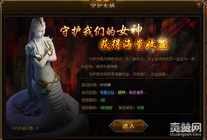 1)洞府等级达到3级,可以开启守护女娲活动。