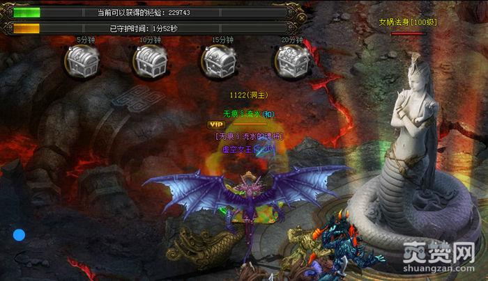 超过5分钟女娲不死亡,参加活动的全体成员各得1个青铜宝箱。