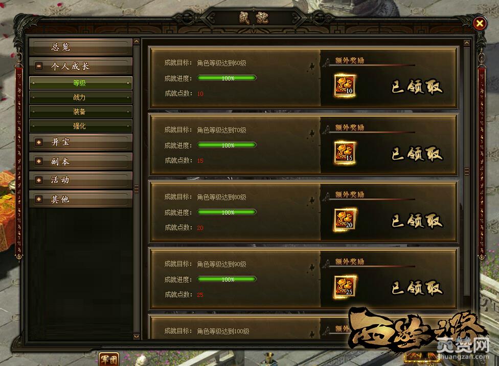 打开界面后玩家可查看对应成就达成条件与奖励,完成对应任务条件可以获得特殊奖励