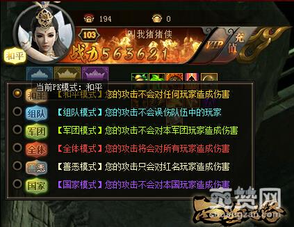 点击角色头像下面的和平按钮可以切换当前模式