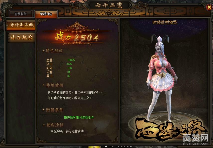 2)角色时装:可以通过消耗元宝购买个性外显