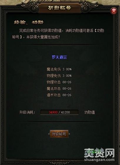 功勋称号中可以提供给玩家攻击力以及伤害减免属性,是PK打BOSS必不可少属性