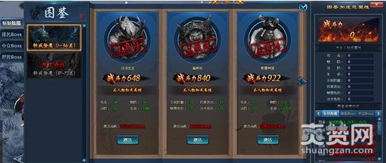 点击图鉴tips都可直接打开对应的产出副本界面及BOSS界面,激活越多图鉴获得的加成属性越多,永久加成战斗力哦!