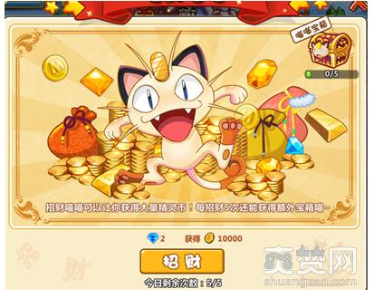 玩家5级解锁,花费少量的钻石可以获得精灵币奖励,每天有5次机会。