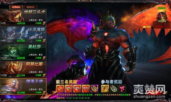 4.世界BOSS每个时间段固定刷新,击杀BOSS可获得大量稀有道具的奖励,对BOSS造成伤害的前三名和攻击最后一下的玩家将拥有专属掉落。
