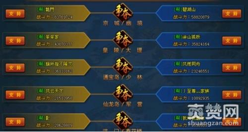 在夺城战当天资格帮会会按照积分排名顺序,举行两两对战,全服一共有10块城池,不同资格争夺的城池也是不同的,在游戏中击杀资源小怪可以获得资源,以兑换攻城器械,器械的超远射程可以克制箭塔,箭塔对敌方玩家和攻城器械造成的伤害是非常大的,而后面箭塔和帮旗是无法被攻击的,攻击箭塔、复活图腾、敌方玩家、资源小怪,都可以获得一定的个人积分、帮会积分、击杀可以获得更多的积分,在对战中每隔10秒钟帮会的旗帜会给本方的玩家增加一次个人积分和帮会积分,所以大家要注意参加,基本只要参加就可以获得奖励,在游戏中能够摧毁对方帮旗的可以获得最后的胜利,而如果双方都没有摧毁对方的帮旗,那么在时间结束的时候哪个帮会获得的分值高,哪个帮会可以获得最后的胜利,如果玩家朋友在游戏中不是前十帮派无法参与活动,我们可以参与对战竞猜,我们每一场对战可以选择支持,而我们只要参与就能获得一份奖励,而支持胜利猜对了可以获得另一份奖励。