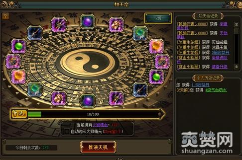 2,每天有一次免费推演天机的机会,此后需要使用火猴精血,火猴精血可以在争夺火猴活动中获得