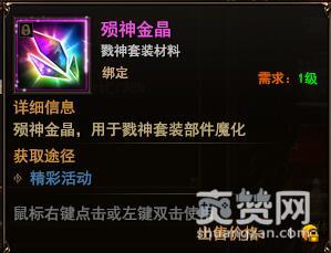 但戮神套装魔化需要消耗殒神金晶,套装魔化除武器需要14个殒神金晶之外,其他部件均需要12个殒神金晶。殒神金晶目前暂时没有获得的渠道,相信之后也会逐步开放的。好了,这就是小编今天为大家带来的戮神套装解析,希望能帮助到大家。