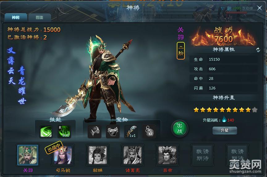 1.完成主线任务开通神将功能的时候,可以获得首位神将--关羽;