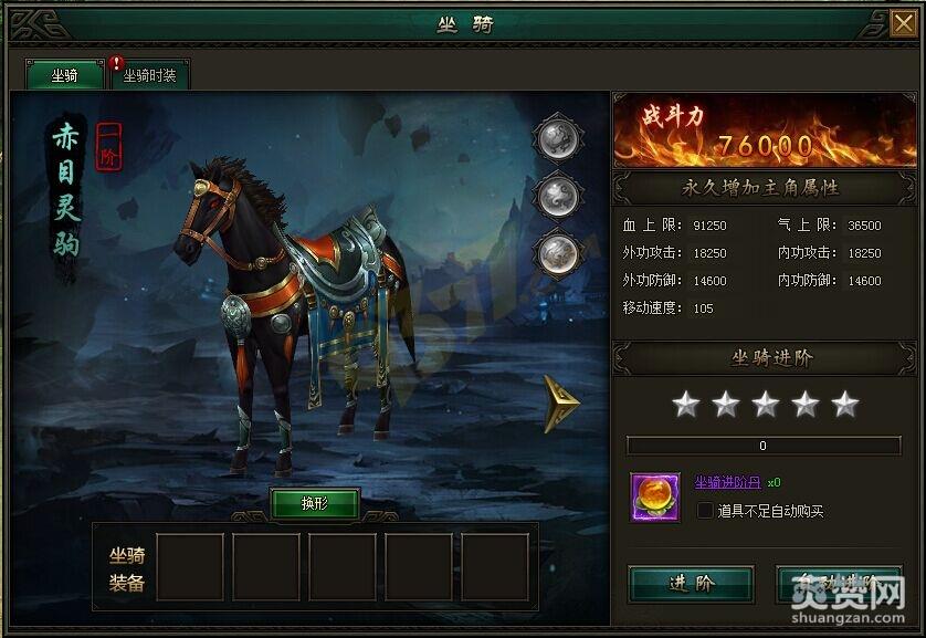 3.玩家可以通过使用坐骑进阶丹来提升坐骑的品阶,品阶提升后,还可以得到更酷炫的坐骑外形;