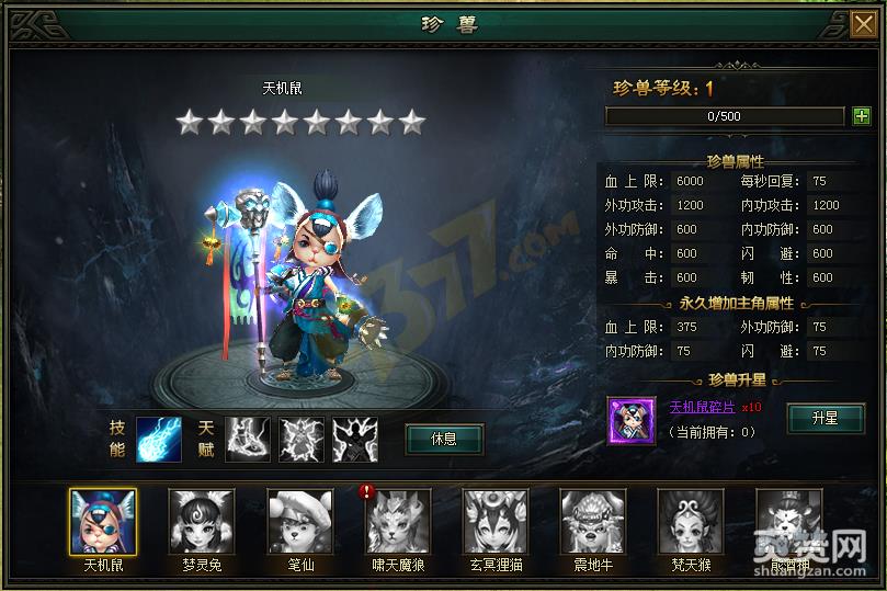 在协助主人御敌杀怪时,珍兽也会获得一些经验值,并且可以升级,玩家也可以通过喂养舍利子来增加珍兽的经验值,使珍兽升级,无毒副作用;