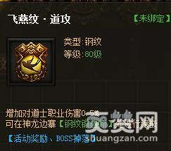钢纹可分为:飞燕纹、仙鹤纹、神雕纹、朱雀纹、玄武纹、白虎纹、青龙纹。(转生装备最高可镶嵌朱雀纹,心法装备可镶嵌青龙纹)
