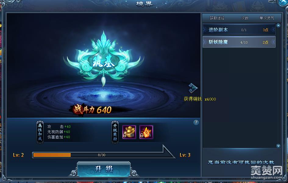 玩家若想快速提升实力,尽快的提升自己的境界不失为上上策,而且又可以获得大量元宝,何乐而不为?