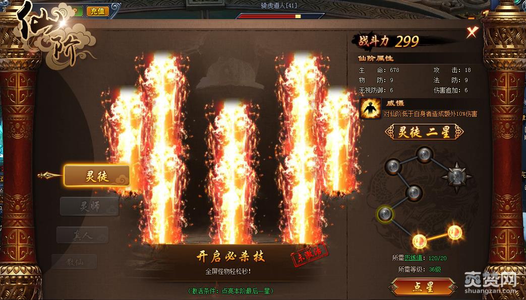 仙阶分5个大阶,每阶7星,每解锁1星可获得一些属性。