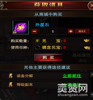 升星石可以通过元宝、绑定元宝、装备分解、等级副本的途径获得。