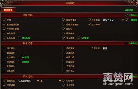 ·玩家勾选需要托管的选项从而可以帮助玩家自动参与活动