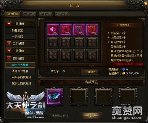 4.史诗雷霆之翼,是斗魔剑神的专属翅膀,需要大师1级才可以穿戴,想要获取史诗雷霆之翼需要大师1级才可以使用想要合成史诗雷霆之翼需要创造宝石3个、太阳纹章1个、月轮纹章1个、星轨纹章1个、破灭之翼13追5以上的1个、任意卓越装备加9追1以上的道具可以增加成功率,这个不是必须的。