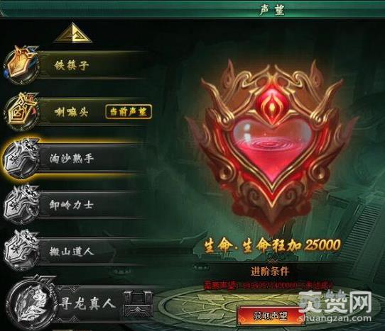 竞技场:开服时主要的声望来源,主线任务开启竞技场后建议第一时间冲榜,最快速度爬到力所能及的位置,只要比别的玩家先爬到前十甚至第一,在押镖任务之前或押同种品质的镖车情况下,他们挑战你之前声望都会比你低形成一种隐藏的战力差距(尤其是土豪之间的战争)。