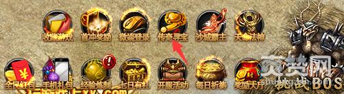 点击主界面右上角的“传奇探宝”按钮即可进入寻宝系统。
