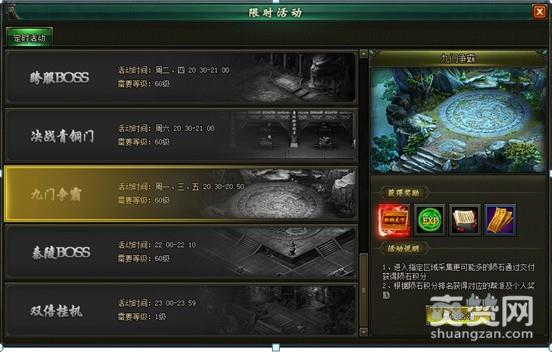盗墓笔记游戏九门争霸活动时间为每周一、三、五20:30-20:50,活动具体说明见下图: