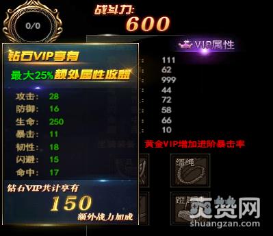 VIP玩家将会在这些基础之上,再获得一个VIP的奖励,提升25%的额外属性。强者总是会拥有VIP的嘛!
