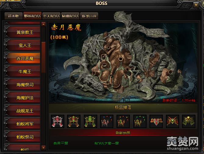 100级的野外boss——赤月恶魔,可掉落大量极品装备。