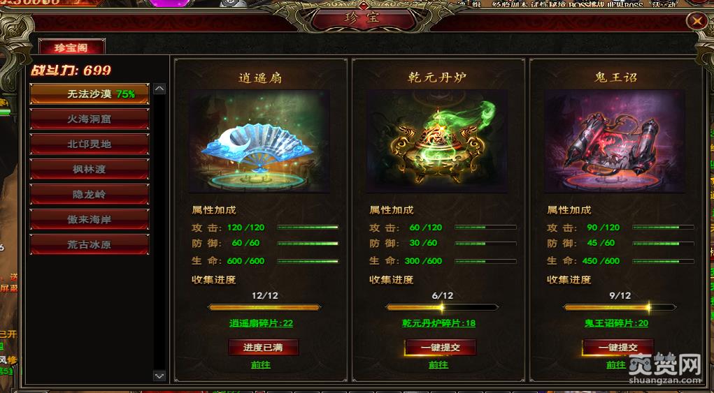 珍宝收集进度越高,提供的属性也就越多。