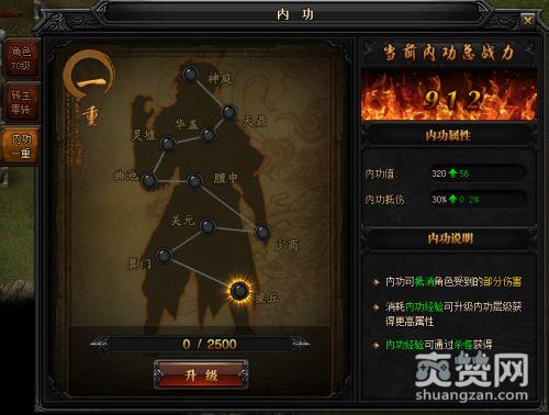 当一层的十个穴位都升级完毕,玩家即可到达下一重内功。