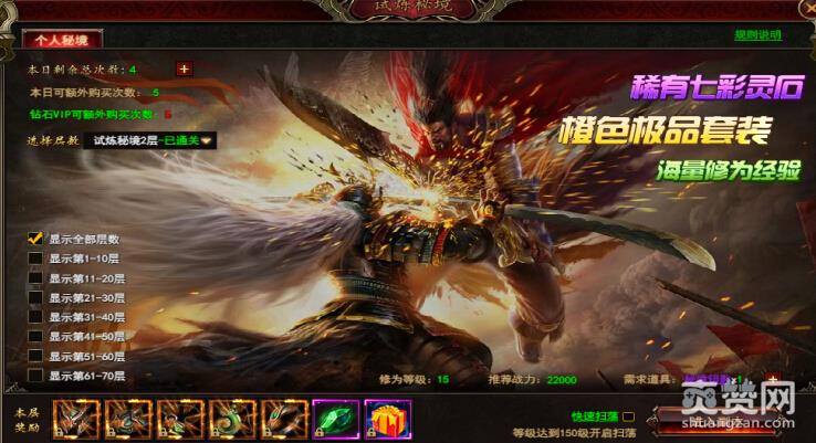 二、只要修为等级满足,可以进入任意一层秘境副本。