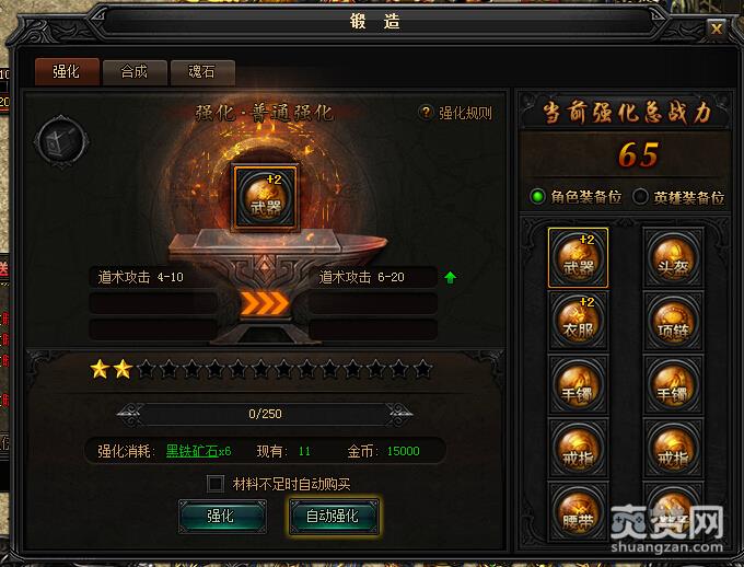 主要强化角色和英雄的装备部位,永久地增加属性。
