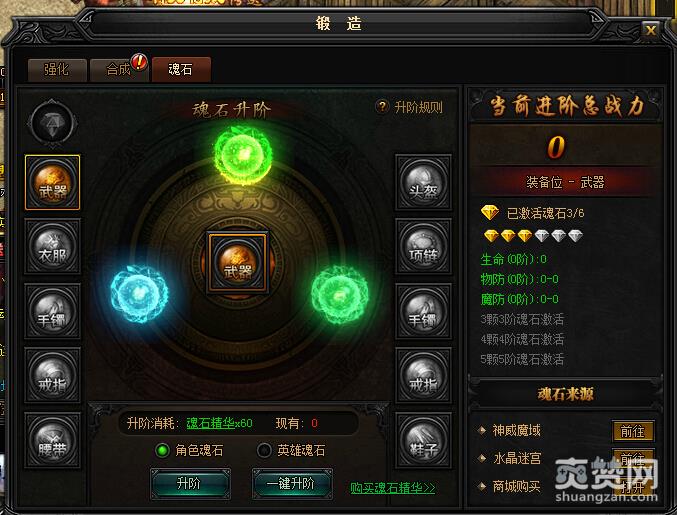 魂石可通过神威魔狱、水晶迷宫、商城购买的方式获得。