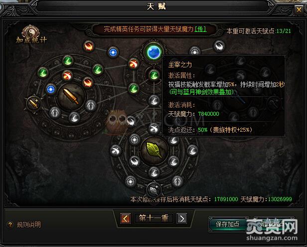 激活不同的天赋点,会对英雄和角色有不同的属性加成。蓝月传奇英雄天赋有多层,层数越高,天赋点激活后所获得的属性也就越多。天赋点需要按顺序激活,激活指定的点数后,可开启下一重。