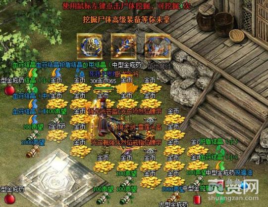 点击BOSS尸体,弹出挖掘面板,消耗元宝,直接获得部分BOSS掉落物品。