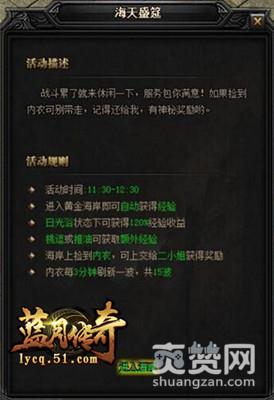 说到海天盛筵,许多小伙伴们肯定都知道。但别想歪,在蓝月传奇中也有海天盛筵这一玩法,却是获取海量经验奖励的好去处,在春日阳光下晒晒日光浴就能获得许多好礼,这等好事怎么能错过,今天小编就将为大家介绍一下,不要错过了哦!