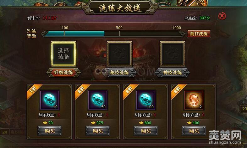 当洗炼奖励达到1000,激活神级洗炼。神级洗炼:将一件满级橙色装备洗出指定秘技。