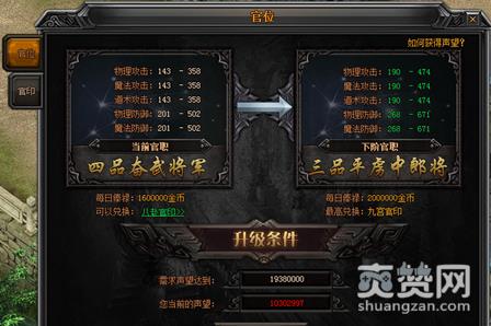一、升级官位等级时需人物达到指定等级且消耗一定量的声望,不同等级的官位需求不同;