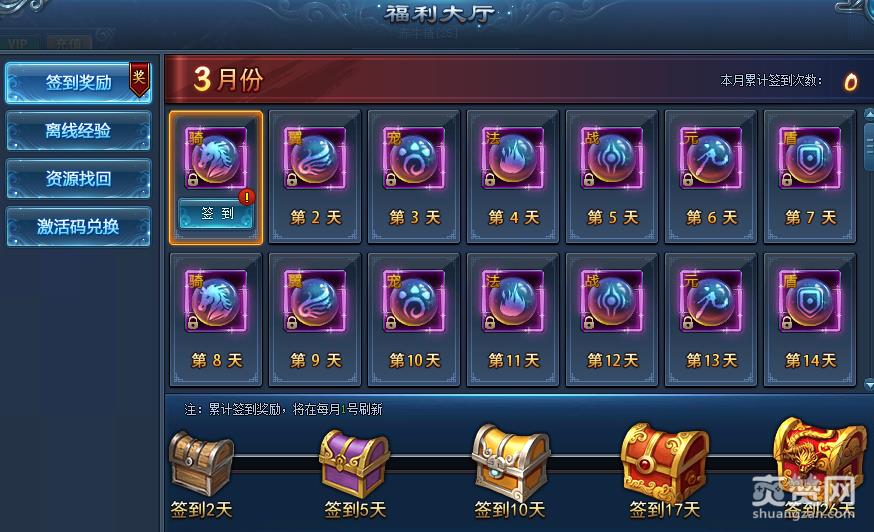 2、每月累计签到一定数量,还可以领取额外的奖励物品,次数次月清零。