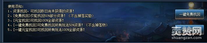 1、前一天没时间做副本、任务,参加不了活动没关系,资源找回系统可以帮你找回在副本中的收益。