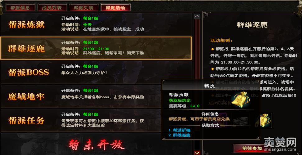 三、参加帮会群雄逐鹿也可以获得帮派贡献。
