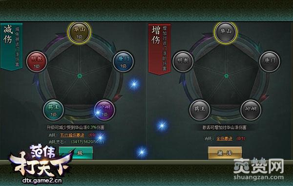 激活减伤五行后,玩家通过消耗五行减伤要诀和灵石进行五行升级,等级越高则减免被该门派伤害就越大。