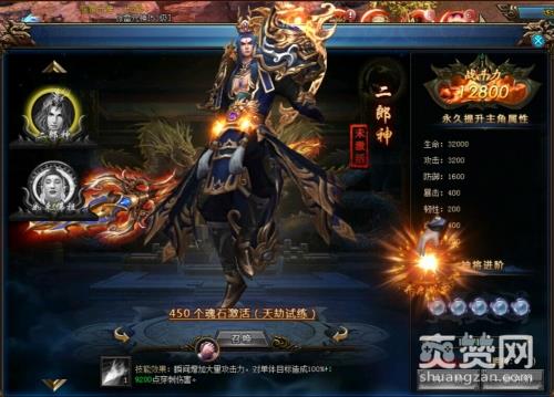 4、二郎神,450个魂石激活,技能天眼神通,瞬间增加大量攻击力,对目标造成100%+19200点穿刺伤害。