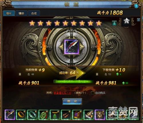 装备强化:消耗【强化石】即可对装备进行强化升星,强化成功则点亮星星,相应属性获得提升。当然恒定的强化法则同时存在:强化等级越高,成功率越低。
