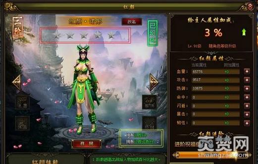 在游戏中,红颜每阶需要升满五颗星,才可以进阶到下一等级,玩家们想要获得星星就必须要消耗红颜丹来增加进阶祝福值,祝福值满后就会亮一颗星星,当五颗星都点亮后,红颜就可以进阶到下一阶。会为你的人物提供百分比的数据加成,阶数越高,给出战人物加成的百分比越大。