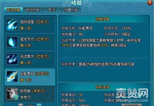 每个角色都有自己的特色技能,特色技能这是必须先升起来的,如果是R玩家,最好就是通过铜钱买技能书,快速升到7级或以上。如果你是非R,那就没办法了,只能通过在线不断打怪,持续使用技能来练了,但是前期通过技能书升级还是很靠谱的。对于技能升级的选择。很多玩家都是看到有技能可升就先升级,不知道其实有些技能并不是很重要的,如真武的仙风道骨,每升一级增加1%防御,需要;历练也比较多,其实真武需要的是攻击以及命中,所以这个技能不急升。