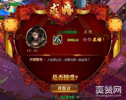 结婚双方需达60级,互为好友,且性别不同,结婚时双方需处于组队状态,并且只允许男性向女性求婚,双方必须是未婚人士且好友亲密度≥9999,攥写神圣的求婚宣言、选择象征永恒的爱情钻戒后,男方才能向女方进行求婚。赠送、接受鲜花可增加好友之间的亲密度,当求婚仪式完成后,女方将看到求婚页面,同意求婚则进入婚礼预约步骤,拒绝求婚则很遗憾错过本次姻缘。