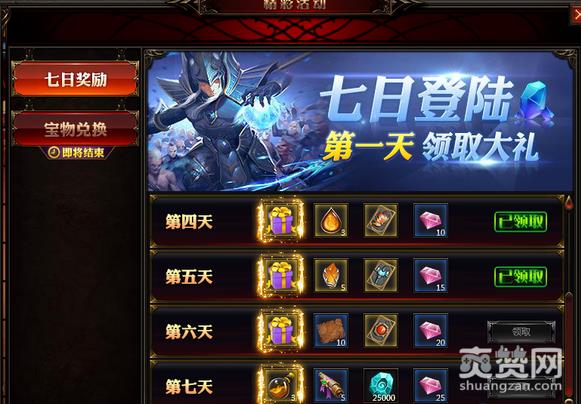 登录第三天可以领取水晶之炎,神器礼盒和神器优惠卡,15颗祝福宝石。水晶之炎可以帮助玩家激活神器凤凰火羽,玩家可以消耗钻石来开启神器礼盒和优惠卡,获得大量神器进阶材料。